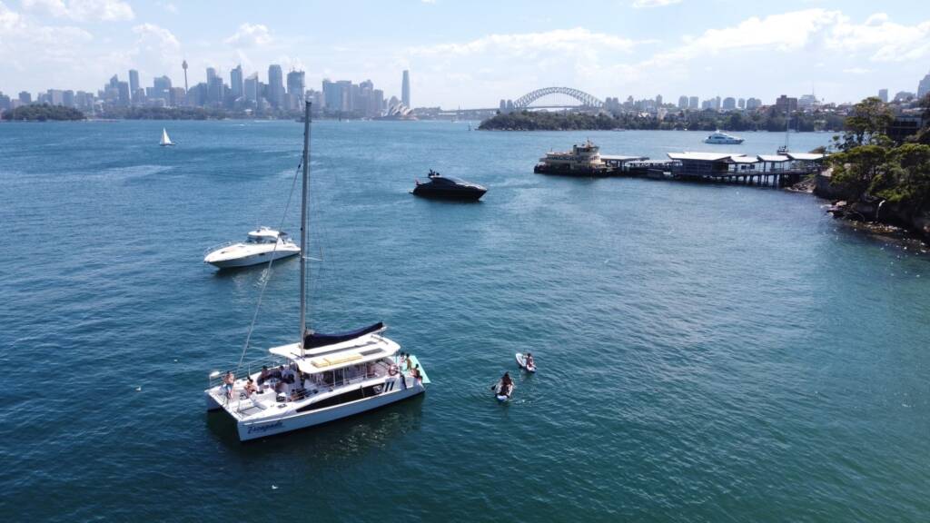 Escapade resort party boat can cater for up to 43 guests, and has the option of cruising or sailing. These shallow draft Seawind 1160 Resort Party Boat Hire Sydney can anchor close in to beaches – wonderful for swimming.