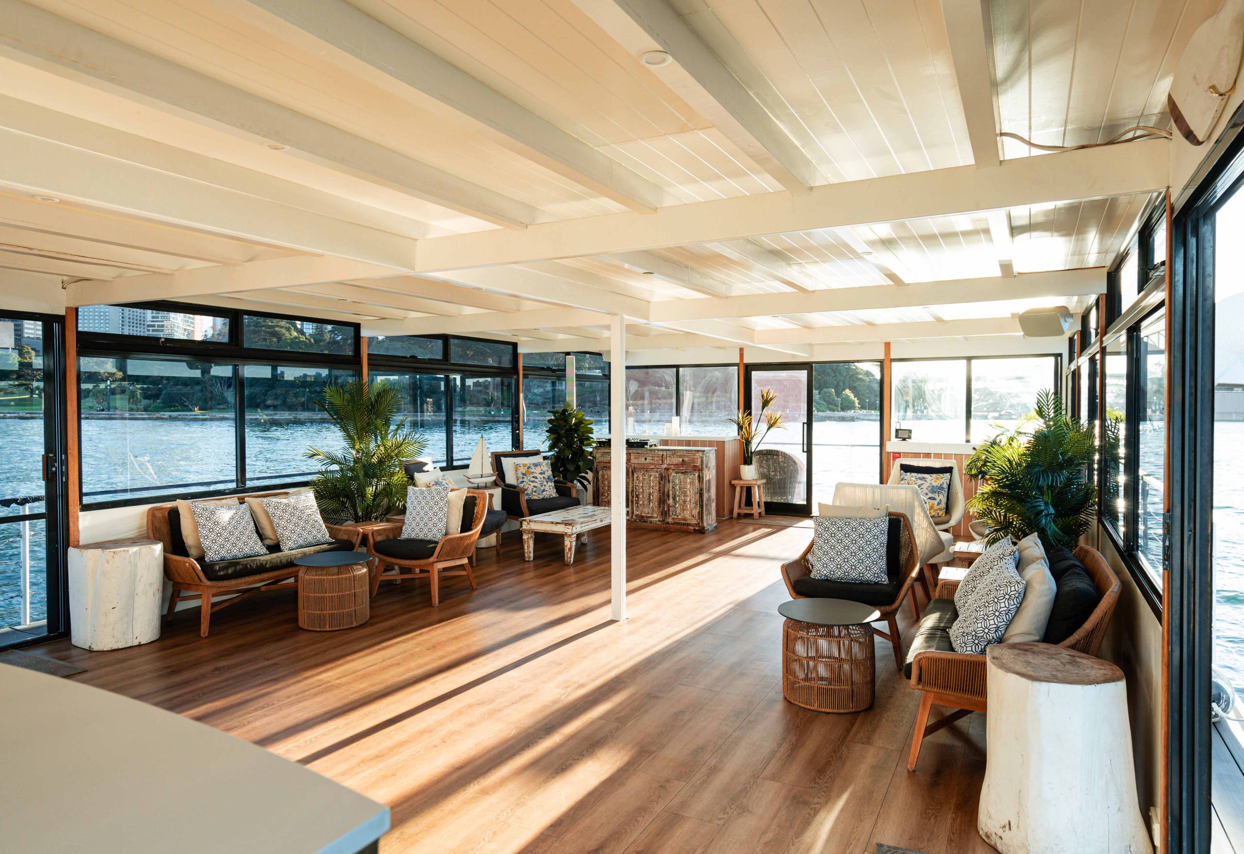 The most unique event space to hit Sydney Harbour, Hamptons function boat hire boasts two large open-plan floors with over 260 square meters to explore and take in the ever-changing Sydney Harbour vista.