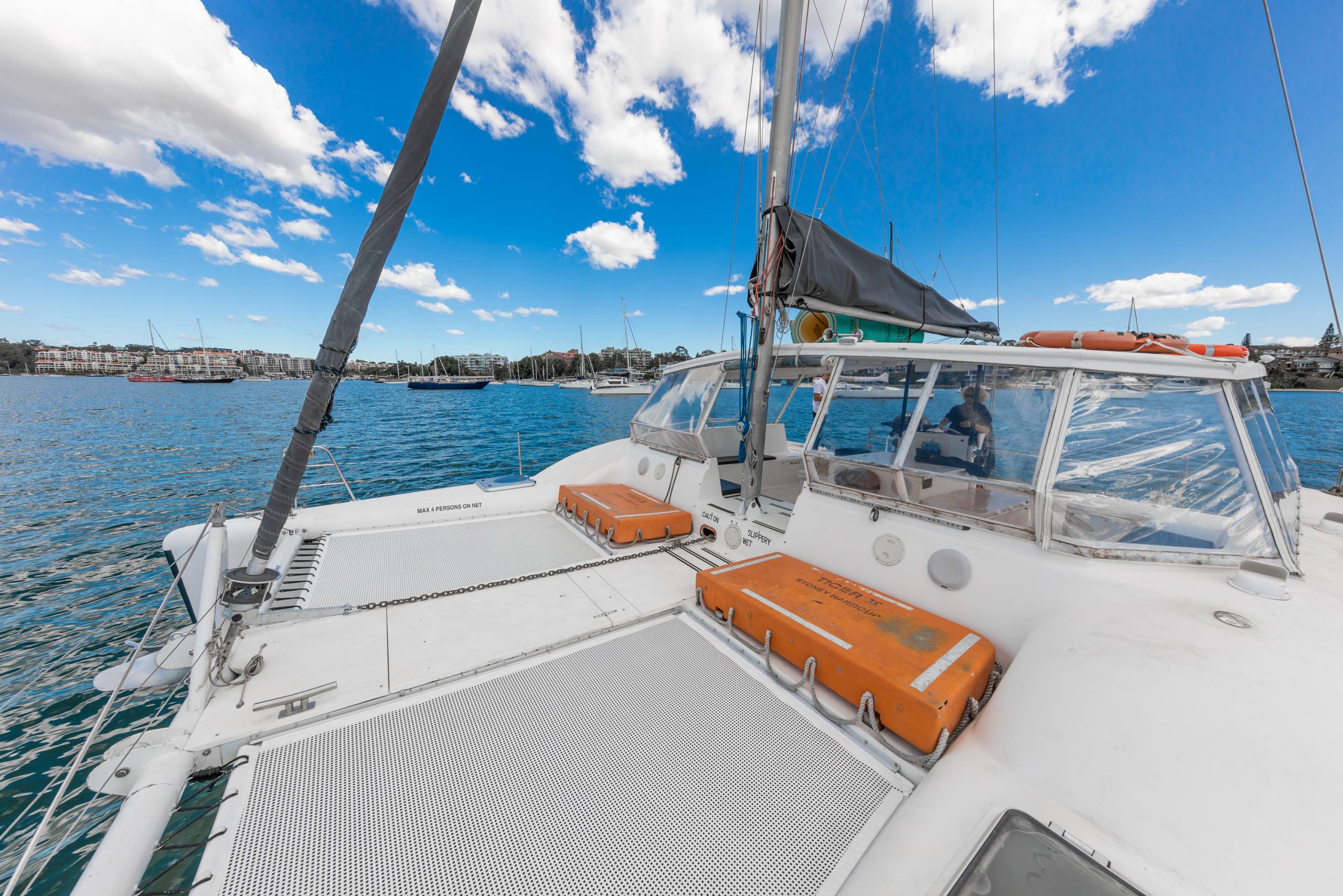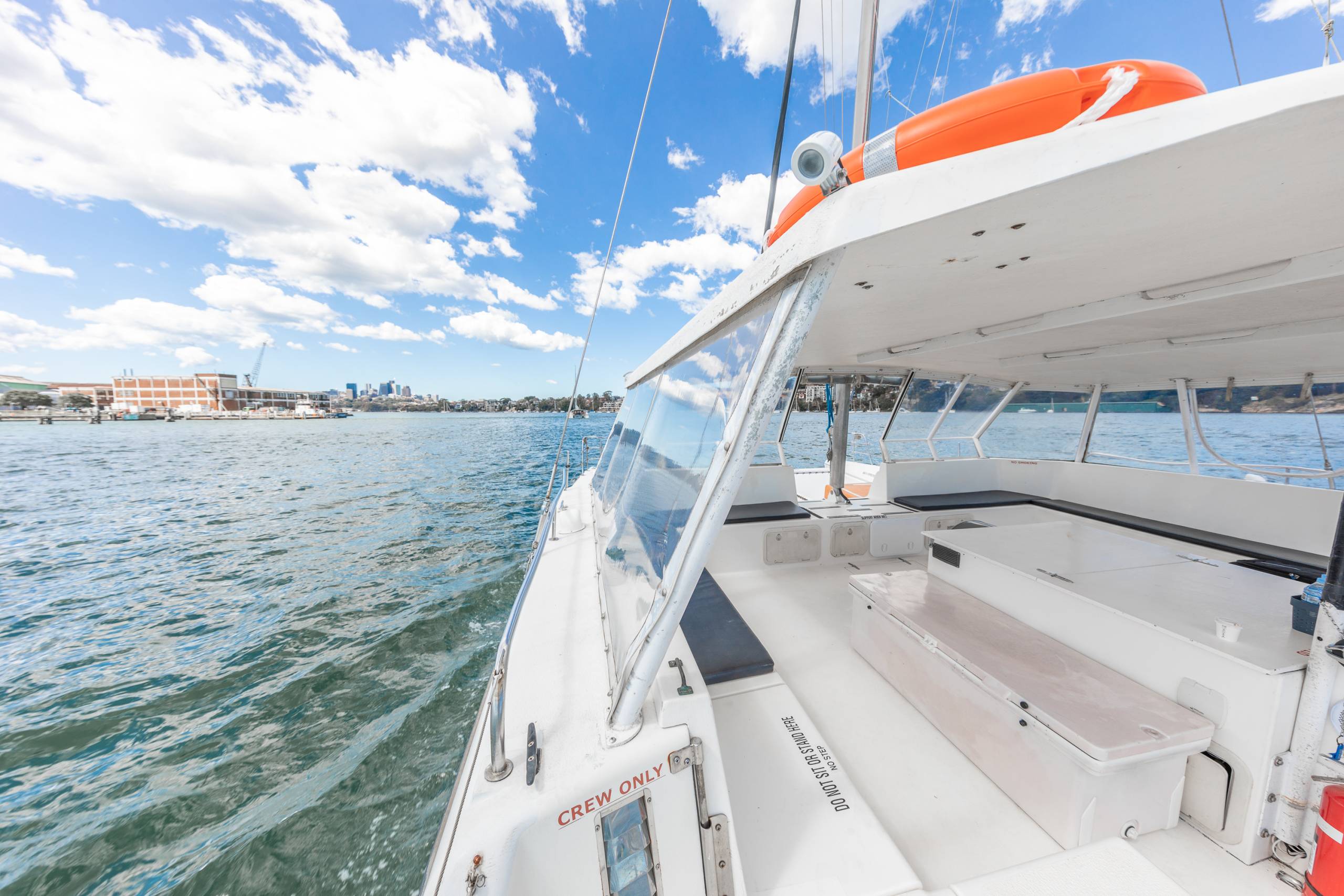 This 34ft Seawind Resort also known as Platypus 2 resembles one of Sydney’s perfect charter boats. Amongst her overall length of 34ft, Platypus 2 has a maximum capacity of 30 guests. Platypus 2 open plan design is different to the standard catamaran. Incorporated into one large entertainment area, guests can roam freely, dance and eat whilst cruising down Sydney Harbour.